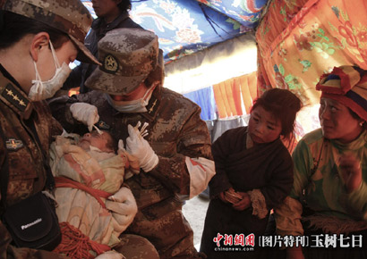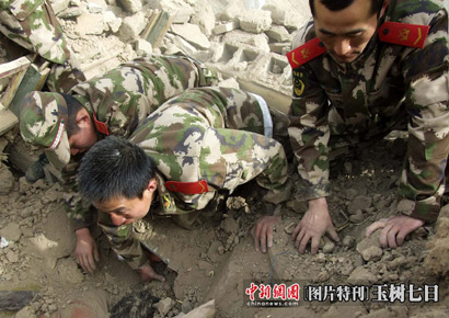 武警戰(zhàn)士在玉樹(shù)地震廢墟里救助被困民眾
