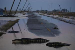 颶風過后鱷魚現(xiàn)身路邊