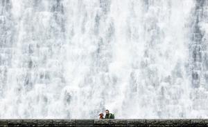 英國(guó)水壩泄洪形成“瀑布”