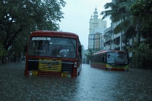 印度孟買街道變“河道”