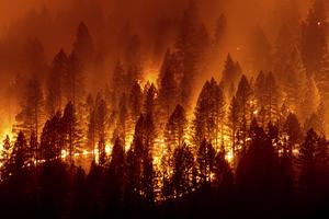 美國加州野火肆虐 火光映紅山林
