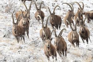 新疆博州北山羊雪中覓食嬉戲