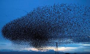 英國椋鳥空中聚集密密麻麻