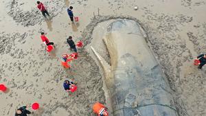 直擊救援?dāng)R淺抹香鯨
