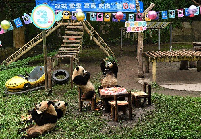 六只大熊貓辦集體生日會(huì)
