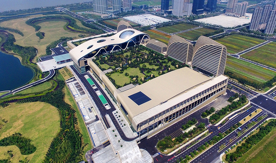 杭州奧體中心國博壁球館為亞運會壁球項目比賽場館及訓(xùn)練場館,位于杭州市蕭山區(qū),是2016中國G20杭州峰會主會場。國際博覽中心交通方便,場館設(shè)計兼具江南意蘊與現(xiàn)代簡約。中心占地面積19萬平方米,建筑面積85萬平方米,是集會議、展覽、餐飲、旅游、酒店、商業(yè)、寫字樓于一體的多元業(yè)態(tài)綜合體。