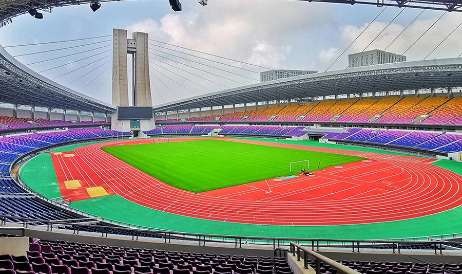 蕭山體育中心體育場為亞運會足球項目比賽場地,位于杭州市蕭山區(qū),地處亞運村東南方向且相距約11.7公里。總建筑面積34542平方米,觀眾席位數(shù)10118座。