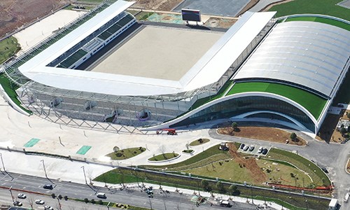 紹興棒(壘)球體育文化中心為亞運會棒壘球項目比賽場地,位于紹興柯橋區(qū)和鏡湖新區(qū)交界處、杭紹臺高速公路鏡湖互通附近。其中,棒球項目用地面積 120666平方米,總建筑面積 145000 平方米,其中地上建筑面積89200平方米,地下建筑面積55800平方米。功能區(qū)包括一個棒球主場(座位數(shù)5000個),一個棒球副場(座位數(shù)2500個),一個集訓(xùn)中心和一個體能訓(xùn)練館。壘球項目用地面積 42666平方米,建筑面積8000平方米,含一個壘球主場(座位數(shù)2000個),一個壘球副場(座位數(shù)500個)。