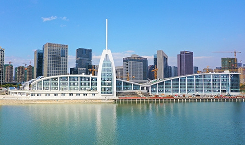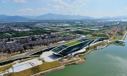 溫州龍舟運動中心為亞運會龍舟項目比賽場地及訓(xùn)練場館,位于溫州市甌海區(qū),含綜合館、終點塔及觀龍臺。龍舟競渡在溫州已有二千年歷史,溫州市被稱為“中國龍舟名城”,該基地賽后將永久性保留,作為全國最專業(yè)的龍舟競賽基地??偨ㄖ娣e23713平方米,觀眾席位數(shù)344座,沿河兩岸約有20000個站席。