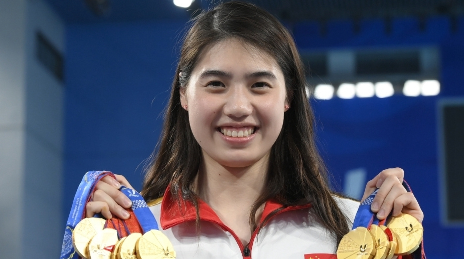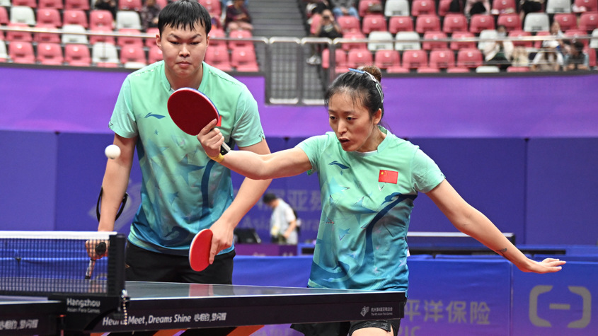 中國游泳隊斬獲56金 隊員賽后慶祝 汶川地震幸存者參加杭州亞殘運會乒乓球比賽 杭州亞殘運會游泳女子400米自由泳S9決賽:徐佳玲摘金